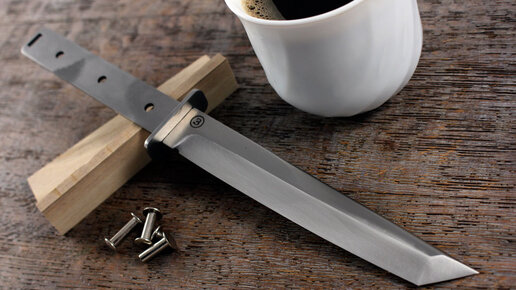 Друзья, это уже не первый набор, который мы производим для тех, кто хочет изготовить нож своими руками. Уже были до этого «Финский», «Пчак», «Разведчик» и «НеПропаду» (ссылки будут в конце статьи). Новинка! И вот сегодня, по многочисленным заявкам, мы выпустили с нашего производства набор для изготовления ножа типа «Танто». Его отличительная особенность — односторонняя срезка, но обо всём по порядку. ---------- Черный нож «За Победу!». Спецсерия для СВО. →→→ Обзор и купить ------------- Встречайте! Первое, что хочется подчеркнуть — это сталь клинка...