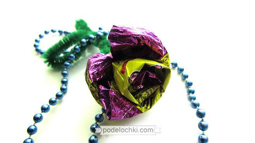 Как сделать объемную розу из фантиков и синельной проволоки