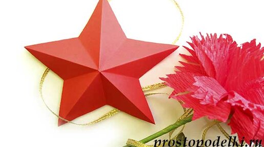 Поделка к 9 мая Дню победы. Простая объемная звезда из бумаги. Пошаговый мастер класс.