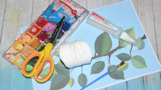 Одуванчики. Аппликация из цветной бумаги и ватных дисков. Поделка своими руками.