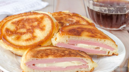 Оладьи с колбасой и сыром.