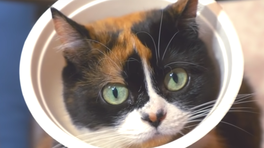 Бывает что вы нанесли на вашего кота например средство от блох, которое нельзя слизывать, но кот ведь этого не понимает, поэтому ему надевают специальный ошейник, который не дает животному себя лизать. Но что делать если у вас нет такого ошейника? Возьмите одноразовую глубокую тарелку (лучше бумажную) и сделайте на ее дне дырочку под размер вашего кота...