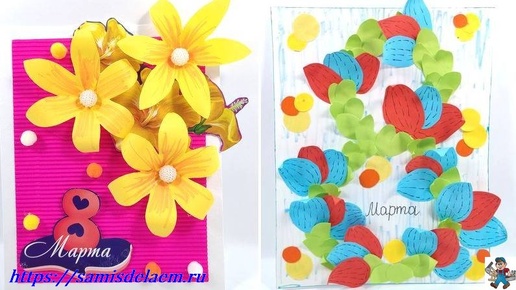 Всем привет! Приближается замечательный первый весенний праздник 8 МАРТА — Женский день. В этот день поздравляют женщин, желают счастья, красоты и самые наилучшие пожелания. Особенно приятно получить открытку, сделанную своими руками от детей. В этом уроке предлагаю несколько вариантов таких подарков маме от детей. Красивые, яркие, объёмные поделки с цветами. На таких открытках можно написать свои поздравления и пожелания своим мамам, бабушкам. Постарался выбрать варианты несложных поделок, с которыми справятся дети в начальной школе...