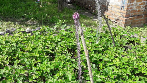 Только появились первые ягоды клубники, как птицы уже тут как тут. Воробьи, скворцы и вороны начали пробовать еще не созревший урожай. Решил я применить работающий и простой метод для отпугивания незваных гостей. Для сооружения отпугивателя птиц нам понадобится: 1. Деревянные палки длиной около метра. Я отобрал кленовые, которых у меня много после вырубки периметра дачи. 2. Старые компакт диски. 3. Новогодние гирлянды. 4. Крепкая нитка или бечевка. Собираю простую конструкцию. Толстый конец палки заострил топором, к тонкому концу палки привязал отрезанную на 2/3 от длины палки бечевку...