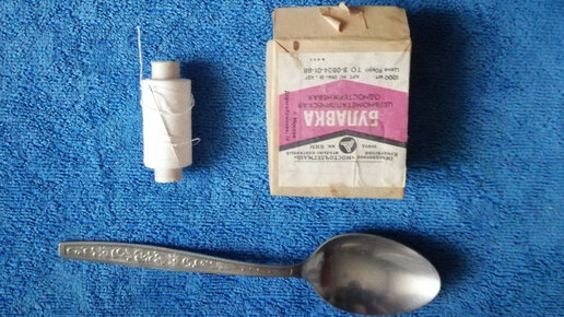Здравствуйте. В процессе Вашего ремонта среди большого количества материалов и инструментов пропал строительный отвес? Бежать в строительный магазин нет времени и желания? Сегодня я расскажу, как из простых вещей смастерить строительный отвес. У меня на даче потерялся отвес, пришлось придумать ему замену. Для изготовления классического строительного отвеса я использовал моток швейных ниток, булавку и столовую ложку. Беру нитку и ложку. Вокруг черпала, наматываю нитку в достаточном количестве и завязываю на два-три узла...