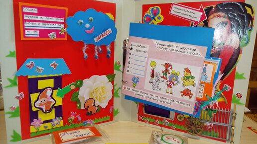 Очень часто в работе с детьми, необходимо не только привлечь их внимание, но и задержать его на какое-то время. В этом нам с вами может помочь лэпбук. Похож лэпбук на папку - передвижку, но он более функционален. Я предлагаю свой вариант лэпбука под названием "Сказочный переполох". Считаю, что сам лэпбук не обязательно украшать снаружи, так как таких пособий может быть у педагога много по разным темам. А для того, чтобы они хорошо хранились необходимо иметь возможность легко достать и легко убрать его, так чтобы ничего не мешало...