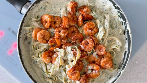 Рецепт пасты в сливочном соусе с креветками. Вкуснее, чем в ресторане (язык проглотишь)