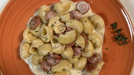 Простой рецепт домашней еды, которая нравится даже детям Ингредиенты на 4 порции - Паста, которую любите – 250-300 грамм - Сосиски молочные – 3 штуки - Чеснок – 1-2 зубчика - Сливки 20% – 200 мл - Оливковое масло – 2 ст...