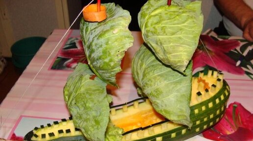 Поделки из овощей для детского сада могут быть самыми разными и невообразимыми. Чем более непредсказуем аксессуар, тем больше внимания будет к нему обращено, тем самым повышая самооценку ребенку и создавая положительное отношение к нему. Чтобы домашняя работа в виде поделок из овощей для детского сада была выполнена на отлично, рекомендуем просмотреть лучшие варианты мастер-классов. Подготавливаем кабачок, длиной 30-40 см и 7-10 см в диаметре. Его нужно промыть под водой, просушить полотенцами...