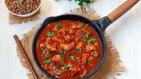 Приготовил кисло-сладкую подливку с мясом, для гарнира в виде гречки