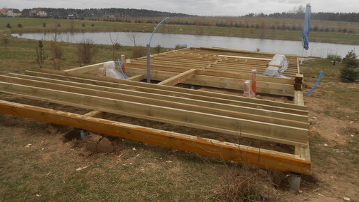 Здравствуйте, сегодня хочу рассказать вам о технологии устройства перекрытия пола на фундаменте из винтовых свай. Мы рассмотрим как сделать основание для дальнейшего строительства каркасного дома или дома из бруса. Обвязка по сваям После того как сваи закручены можно приступать к устройству перекрытия первого этажа. Это важнейший этап, самое главное не допустить ошибок и все сделать правильно, иначе переделать потом будет очень сложно. Первое, что необходимо сделать - это связать сваи между собой...
