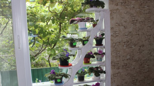 Сделала полку для цветов из старых досок и корзинок из Фикс Прайс своими руками