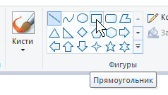 В программе Paint есть Панель инструментов с именем "Фигуры" и есть фигура или инструмент с именем "Прямоугольник". Это считается стандартная фигура и её часто приходиться рисовать художникам в своих работах. Но бывает очень сложно рисовать такие точные фигуры даже опытным художникам и он просто делают это по простому шаблону фигуры. Мы можно сказать сегодня изучаем шаблон -Прямоугольник. Если мы наведём курсор белая стрелка на один из значков в меню Фигуры, то можем увидеть, когда курсор несколько...