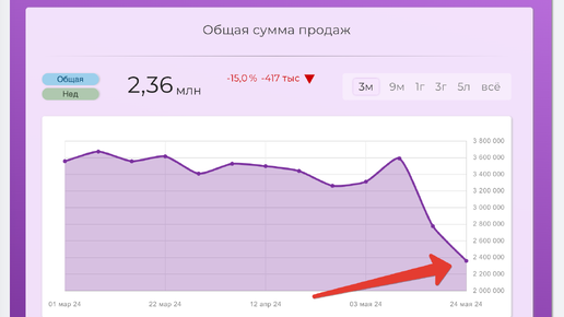 Условия: Компания “Семейный пекарь” (производят пироги, пряники и прочее). Статистика: “Общий объём продаж” (контрольная точка - последняя на графике ниже). Сделайте прогноз о том, что будет с продажами на следующей неделе. Куда пойдёт статистика: вниз или начнёт расти? Вполне возможно, что вы испытаете некоторое замешательство, так как не на что опираться. Возникает вопрос: “От чего зависит эта статистика, в ДАННОЙ компании?”. Когда это ваш бизнес, многие вещи вы чуете ещё на подлёте, и: “Если прилетит...
