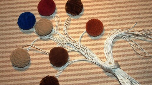 Я решила вынести данный материал за пределы сериала. Потому что подобные штучки могут пригодиться и в других местах. При декоре подушек, например. Или других поделок. А также для одежды, если нет специальных пуговок для обтяжки. Что было пришито на кресло ранее Старых пуговиц, которые я отпорола от кресла при разборке, было шесть штук. А когда-то было семь. К тому же, после некоторых размышлений я поняла, что хочу добавить ещё одну. Так получилась цифра 8. Сначала думала просто подобрать парочку подходящего размера...