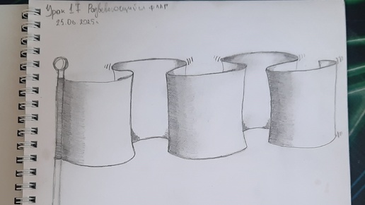 Выполнение семнадцатого урока. Развевающийся флаг. | Учусь рисовать за 30 дней