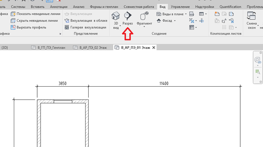Как сделать ломаный разрез в ревит? Допустим, создали план этажа (несколько стен, коридор, окна, дверь). Теперь, создадим разрез: