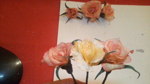 Вам понадобится: - Ткань; - Ножницы; - Горячий клей-пистолет. Шаг 1. Разрежьте ткань на ленты. Для создания одной розы понадобится одна полоска длиной 50-70 см и шириной около 3-5 см. Впрочем, вы можете выбрать и другие размеры, если хотите сделать розу больше или меньше, чем в данном проекте. Шаг 2. Сложите вашу полоску пополам и капните на ее кончик 1,5-сантиметровую дорожку клея (см. правое фото выше). Шаг 3. Начните сворачивать полоску в рулет в несколько оборотов. Шаг 4. Когда рулет станет достаточно...