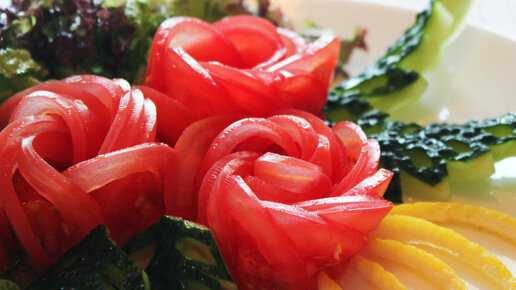 Цветы из помидоров - 4 способа. Как сделать розу из помидора. Украшения из овощей