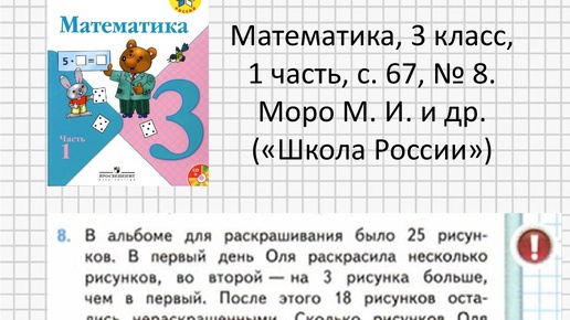 Решаем задачу: математика, 3 класс, «Школа России» (Моро), часть 1, с 67, № 8