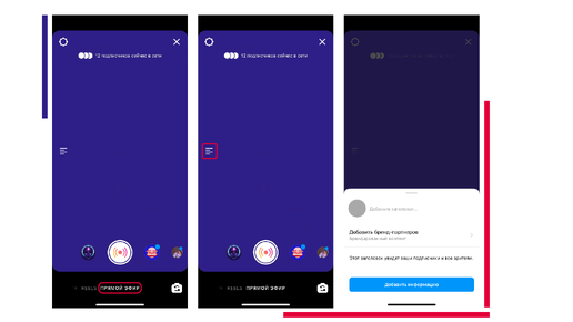 Прямой эфир ― функция, доступная каждому. Не нужно владеть особыми приспособлениями или устанавливать дополнительные утилиты перед тем, как выйти в прямой эфир Инстаграм. Запустить лайв может каждый пользователь. Начало трансляции Для того, чтобы начать трансляцию, достаточно зайти в режим добавления историй и в нижнем меню пролистать вправо до значка «Прямой эфир». Перед началом вещания можно кликнуть на «Информация» и добавить заголовок для своего видео и бизнес-партнера, что поможет зрителям понять тематику вещания...