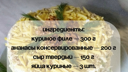 Простой рецепт салата из курицы с ананасом и сыром за 30минут
