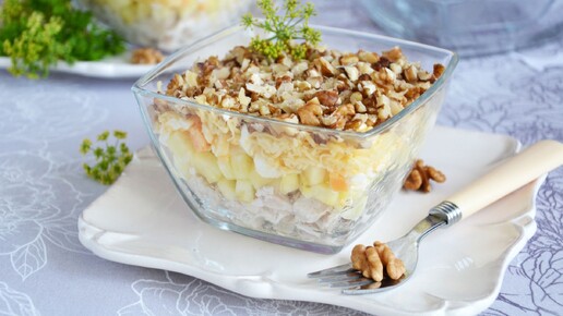 Ищете салат, который украсит праздничный стол и удивит гостей? Этот классический рецепт с нежным сочетанием курицы, ананасов и сыра давно стал хитом. Готовится за 15 минут, а исчезает со стола мгновенно! Какие ингредиенты понадобятся Продукты для 4 порций: Пошаговый план действий Секрет идеального вкуса Для пикантности добавьте горсть мелко порубленных обжаренных грецких орехов. Они дадут приятный хруст и насыщенный аромат, который идеально дополнит сладость ананасов. Для слоеного варианта выкладывайте ингредиенты в таком порядке: курица → майонез → ананасы → сыр → майонез с чесноком...