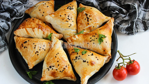 Очень простой и быстрый рецепт приготовления «ленивой» самсы — из готового слоеного теста, с начинкой из фарша и лука, со специями. Если вы заранее разморозите тесто, то процесс формовки у вас займет не более 10 минут, выпекание — 20 минут. Итого 30 минут, чтобы приготовить очень вкусные слойки-треугольники с мясом. Они будут хрустящими, с сочной и невероятно ароматной начинкой. Совет! Фарш можно взять любой. Если используете куриный, то советуем включить в список ингредиентов сливочное масло — разложите по маленькому кусочку масла в начинку, когда будете формировать самсу...
