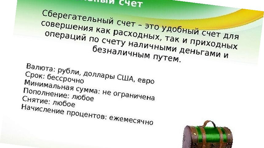 Депозит "Сберегательный счет" от "Сбербанка" полностью оправдывает свое название. Это идеальный вариант, когда средства хочется хранить в надежном месте, но при этом всегда иметь доступ к ним. Рассмотрим подробнее условия данного вклада и оценим положительные и негативные нюансы. Характеристики депозита Вы не имеете ограничений на сумму первоначального взноса. Вам потребуется установить срок действия счета. Вы не имеете ограничений на снятие и пополнение средств. Это предоставляет полную свободу действий...