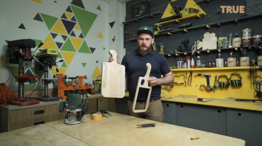 При работе ручным фрезером с копировальной втулкой используется шаблон, контур которого втулка, собственно, и повторяет. Благодаря шаблону мы минимизируем риски повредить или испортить чистовой материал, а также добиваемся точности, недостижимой при отсутствии шаблона. Например, вы делаете разделочно-сервировочную доску, в которой предусмотрены углубления под соусницы. Чтобы сделать их ровно и аккуратно необходимо сначала изготовить шаблон, приклеить его к заготовке на двухсторонний скотч и после этого осуществить выборку древесины с помощью фрезера с установленной копировальной втулкой...