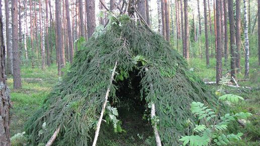 Преимуществом шалаша является то,что в нем можно переночевать, развести огонь, отдохнуть.