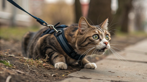 Купила шлейку для прогулок — кот упал и не двигается с места