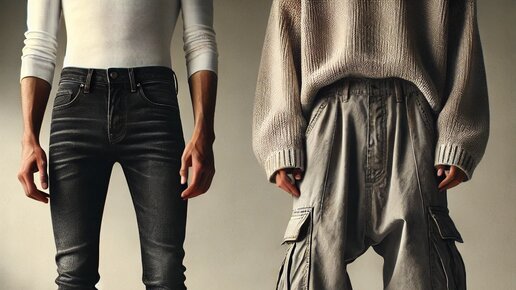 Снова стоишь у зеркала в примерочной, держа в руках две пары штанов. Одни — узкие, как будто ты собираешься на показ мод или на концерт инди-группы, другие — широкие, словно у тебя есть планы на скейт-парк или танцевальные баттлы. Как выбрать? Что модно? А главное — что люди скажут? Узкие штаны — это как тот человек, который всегда опаздывает, но выглядит так, будто делает это намеренно. Они обхватывают ноги так крепко, как будто прошли стажировку у питона. Но зато ты чувствуешь себя настоящей иконой стиля, особенно если к ним прилагаются белые кеды и загадочный взгляд вдаль...