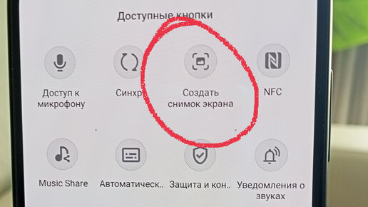 Казалось бы проще простого, но я действительно столкнулась с проблемой. Поиски и советы из интернета не помогли. Самое главное в этом: никак не было видно заветной кнопки "сделать снимок экрана". Ларчик открылся просто))) Открываем верхнее меню в телефоне простым смахиванием вниз и находим в конце значок "плюсик" (см. фото, обведено красным). Нажимаем на знак "плюсик" и находим в Доступных кнопках "Создать снимок экрана" (обведено красным)...