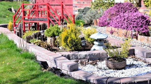 Цветник ЯПОНСКИЙ САДИК. Сухой ручей, японский фонарь и высадка растений. Все СВОИМИ РУКАМИ.