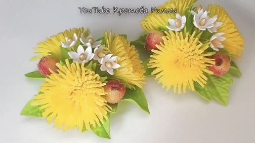 Всем привет, в этой статье коротко раскажу как сделать одуванчики!? Для изготовления цветов необходимы следующие материалы и инструменты: Из жолтого фоамирана нарезаем три полоски и делаем из нее вот такую бахрому, не доходя до края 5-6 мм. (Размеры и количество отрезков указаны на фото) Из зеленого фоамирана нарезаем 6 прямоугольников на листья и 3 полоски для одуванчика (размеры на фото). Зеленые полосы нарезаем вот такими зубчиками и подкручиваем немного подогревая на утюге. Жолтые полосы скручиваем и постепенно подклеваем...