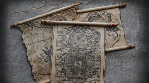 Предлагаю к рассмотрению такой вариант свитков-карт для украшения стен дома, офиса (у кого офис-это брелога дварфа ), гаража, подъезда и тд. Можно использовать как реквизит для игр, фотосессий. Алгоритм изготовления артефакта таков: - находим изображение древней/сказочной карты в сети и печатаем его (крутим настройки, чтобы изображение было достаточно контрастным) на обычном белом листе формата А4 - тонируем лист в растворе кофе, сушим - этот этап можно пропустить. Я еще тонкой кисточкой черной краской...