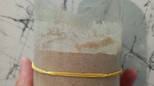 Вы уже приготовили ржаную муку, баночку, воду, весы. Теперь действуем: 1. Отмеряем на весах 60 г воды комнатной температуры. 2. Отмеряем на весах 40 г муки. 3. Смешиваем их в миске с помощью обычной ложки или силиконовой лопатки. 4. Смотрим внимательно на консистенцию: нужна консистенция средней сметаны. Если получилось жиже, добавьте муки, а если гуще, добавьте воды. 5. Перекладываем полученную смесь в приготовленную баночку, закрываем ее крышкой. Да, крышкой, не тряпочкой, не марлевой, а именно крышкой 6...