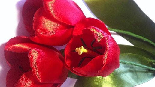 Цветы из лент — отличная идея для украшения интерьера и не только. Из них можно делать броши, заколки, бутоньерки, украсить ими открытку, подарочный альбом, фоторамку. Сегодня мы подготовили для вас подборку мастер-классов по изготовлению тюльпанов из атласных ленточек. Для того чтобы сделать тюльпаны своими руками, нужно подготовить атласную или репсовую ленту. Результат же зависит и от вашей фантазии, и от назначения цветов. Например, на картинке выше невероятно реалистичная версия, которую смастерила Светлана Боровик...