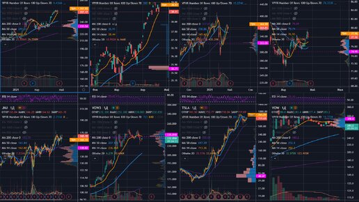 Всем привет! В прошлом посте я рассказал, зачем мне вообще сервис Трейдинг Вью и как выглядит организация активов в моей системе. Сегодня речь пойдет о том, как настроить простенький шаблон и удобно его использовать Все мои компании сгруппированы по 8 штук по отраслям (больше 8 Трейдинг Вью не позволяет отображать в одном окне). Чтобы не добавлять индикаторы каждый раз на новую компанию, я сделал шаблон. Например, мне нужно добавить сектор полупроводников. Я открываю шаблон, сохраняю его под именем,...