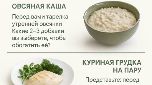 🍽️ 3 БАЗОВЫХ БЛЮДА: КАК СДЕЛАТЬ ИХ ЕЩЁ ПОЛЕЗНЕЕ? Часто именно простые рецепты становятся основой нашего рациона. Давайте вместе подумаем, как легко и вкусно повысить их питательную ценность. 🥣ОВСЯНАЯ КАША 🍗 КУРИНАЯ ГРУДКА НА ПАРУ 🌿ГРЕЧКА+ГОВЯЖЬЯ ПЕЧЕНЬ...