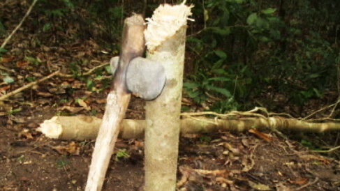 При изготовлении каменного топора в том числе и рукояти, используются только примитивные инструменты и материалы. Это кельт (произносится как "selt"). Тип топора с полированной каменной головой, вклинившейся в отверстие или врезной в конце деревянной ручки (не путать с" Кельтом", относящимся к Кельтскому человеку). Чтобы сделать, как я решил ушло около недели. Голова топора сделана из большого куска базальта. Камень молотка используемый для того чтобы сформировать базальт, был кварц. Пришлось бить молотком, клевать, молоть и полировать голову в окончательную форму...