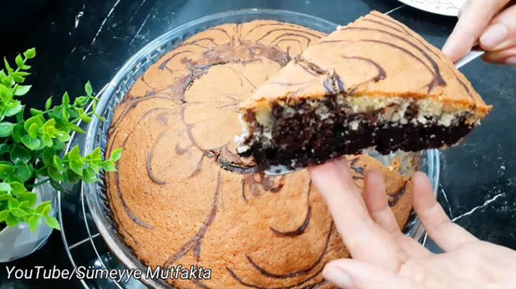 Вы должны обязательно попробовать этот десерт, приготовленный в двух цветах, как торт зебры с этой техникой. Бутылка колы, которая вам нужна, чтобы сделать этот торт. Вы должны отрезать нижнюю часть этой бутылки. Вы можете использовать это дно бутылки, чтобы дать вашему торту конфеты. Чтобы сделать этот десерт, вы должны приготовить один торт. После того, как вы разделите это тесто для торта на две части, вы должны налить какао пополам. Таким образом, вы приготовите два разных теста для торта. Вы должны начать делать торт, поставив основание бутылки в центр лотка...
