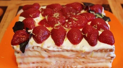 Требуемые продукты: - 24 печенюшки. - 250 гр. творога. - 4 ст.л. сахара. - 2 ч.л. лимонной цедры. - 2/3 ст. молока. - 4 ст.л. сметаны. 3 ст.л. сливочного масла. - клубника. Процесс изготовления: В первую очередь мы сделаем крем. Для этого вам требуется взять творог, добавить к нему сливочное масло, лимонную цедру и сахар со сметаной. Хорошенько всё перемешайте. Можете взбить всё блендером. В любом случае в итоге у вас должна получиться однородная масса. Дальше поставьте стакан с молоком на стол, поставьте широкую тарелку...