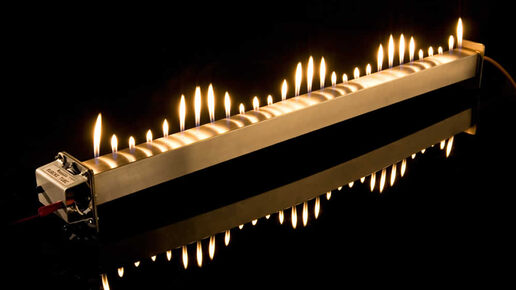 Это почти то же самое, что и ТРУБА КУНДТА, только Рубенса. Там, как вы помните, звуковые волны были направлены в стеклянную трубу, в которой лежали пыль и споры растений - они начинали весело подпрыгивать и формировать кучки, демонстрируя наличие стоячей волны. А здесь изобретатель, Генрих Рубенс, решил организовать эксперимент немного иначе. Он изготовил четырёхметровую металлическую трубу, в которой просверлил в ряд 200 мелких отверстий с шагом в 2 см и пустил по ней горючий газ. Когда выходящий...