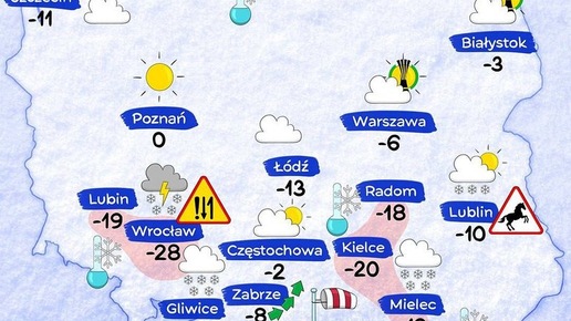 В соцсетях элитного дивизиона Польши по футболу продемонстрировали креативную турнирную таблицу. Таблица выглядит как прогноз погоды. По ней не так просто определить, сколько очков у каждой из команд, придется применить математические навыки. Ноль градусов — в районе Познани, где базируется «Лех». Именно эта команда сейчас лидирует в чемпионате...