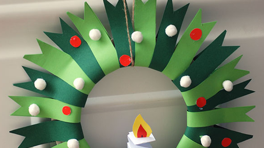 Мы все привыкли видеть красиво украшенные венки из настоящих или искуственных веток, но, что если сделать такой же венок из бумаги? Вот, что вам понадобиться, чтобы сделать такую невероятную красоту)) : Для начала нужно сделать основу - можно использовать вот такую бумажную тарелку, или, например, кусок проволоки обмотанного газетой или белой бумагой Затем расчертите и разрежьте зелёную бумагу на одинаковые кусочки шириной 2-3 сантиметра Смазав их клеем складывайте на половину и оклейте ими всю...