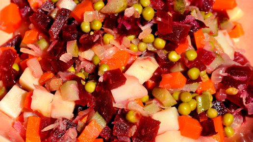 Детальный рецепт без уксусной заправки, для начинающих! Разложено по полочкам, получится вкуснейший винегрет! Но обо всём по-порядку... Какие только блюда не называли в России словом “винегрет” последние 300 лет! Общим было в них только то, что смешивалось несколько ингредиентов (не только овощных, но и мясо, и рыба, и птица) и чем-нибудь заправлялось — чаще заправкой на основе уксуса и оливкового масла, но так же были варианты и с разными салатными заправками, майонезом. Порядок наступил всем на голову при Сталине...