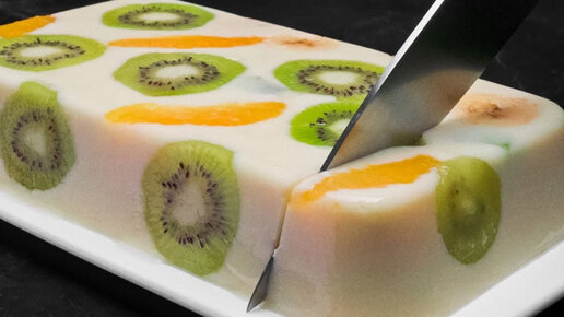 Если у вас есть свежие фрукты и молоко, вы запросто сможете приготовить этот холодный молочный десерт. Приготовление не займет много времени, а еще его не нужно выпекать в духовке. Давайте начинать. Ингредиенты для десерта: Пошаговый рецепт, как приготовить десерт без выпечки Подготавливаю фрукты для десерта. Я взял 1 банан, 2 киви и 1 апельсин. Банан очищаю и нарезаю кружочками. То же самое делаю с одним киви, а второе нарезаю мелким кубиком. Апельсин очищаю от кожуры ножом и вырезаю дольки. Часть фруктов выкладываю в форму...