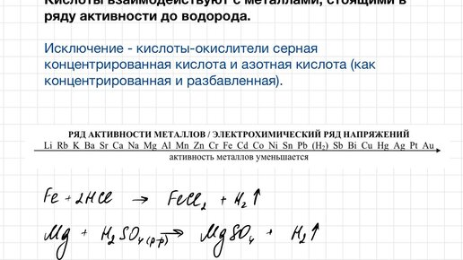 Взаимодействие кислот с металлами